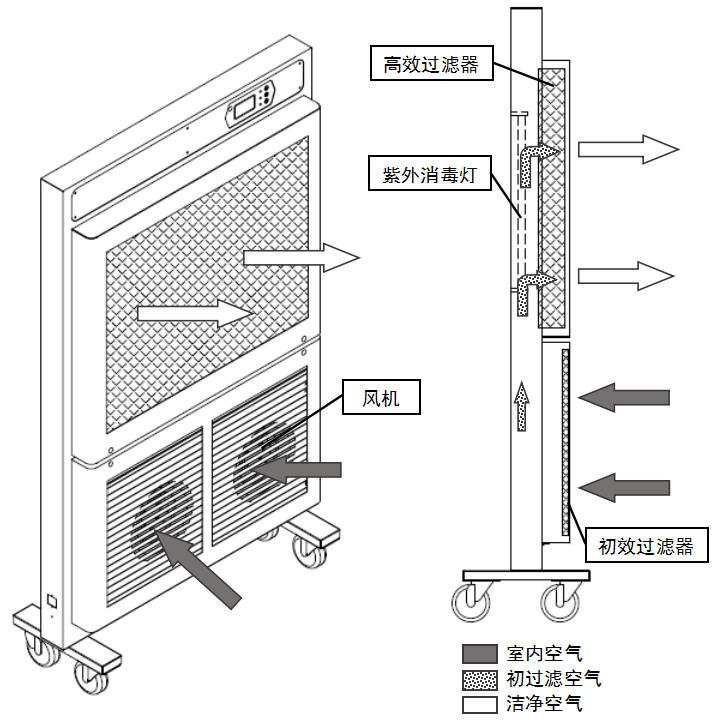 BIOBASE/博科紫外線空氣消毒器是利用風(fēng)動系統(tǒng)將室內(nèi)污濁的空氣吸入設(shè)備中,經(jīng)過濾系統(tǒng)、殺菌系統(tǒng)對吸入的空氣進行凈化消毒處理后放回室內(nèi),通過不斷的循環(huán)使室內(nèi)空氣質(zhì)量逐步提升到一定潔凈等級,以達(dá)到去除室內(nèi)有害氣溶膠、保護人員健康的目的。
