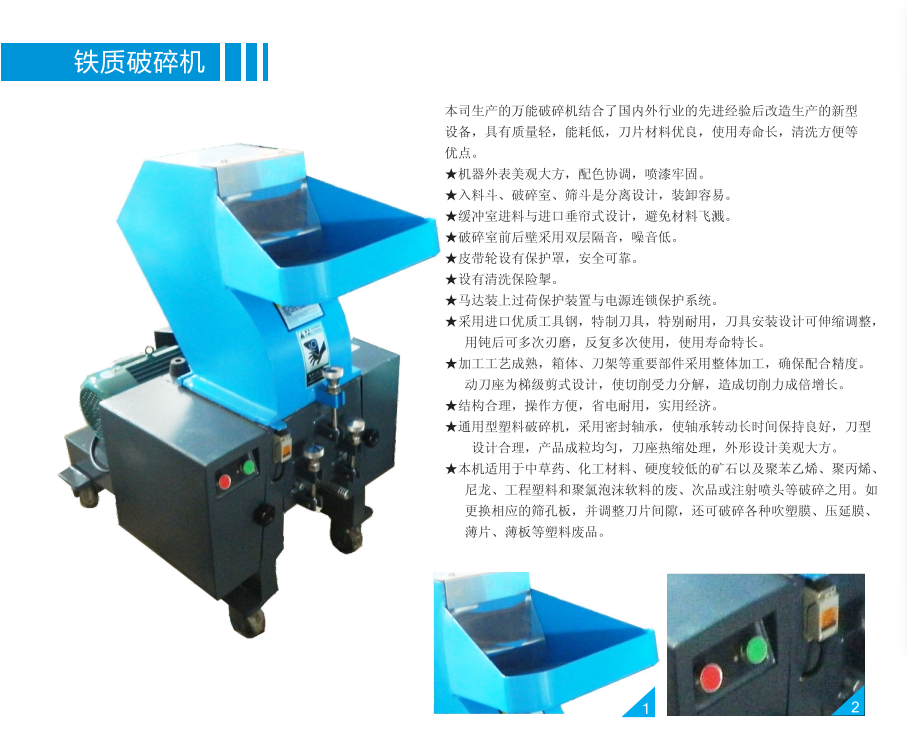 E-180F鐵質(zhì)破碎機采用進口優(yōu)質(zhì)工具鋼,耐用