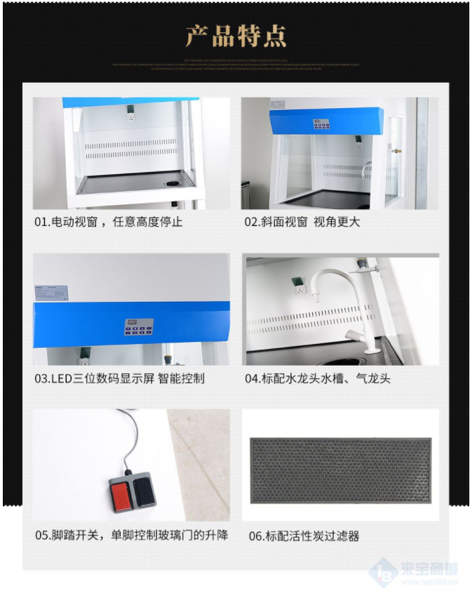 * 11、通風(fēng)柜配置腳踏開關(guān),單腳控制玻璃門的升降,更加實(shí)用。